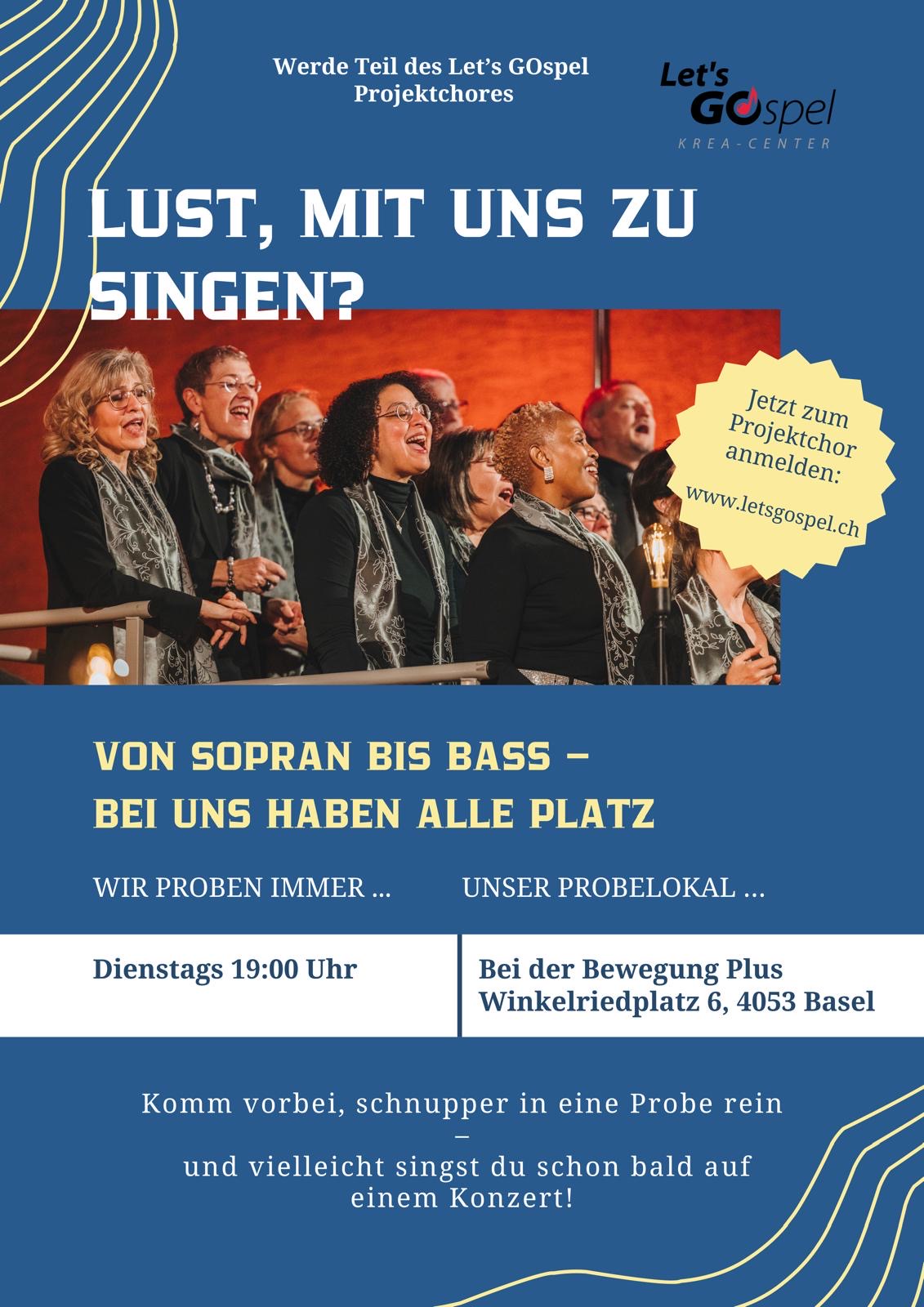 Let’s GOspel probt ab dem 19. August neu in Basel zu Gast bei der Bewegung Plus am Winkelriedplatz 6 in Basel. Alle Musikbegeisterten sind eingeladen, mitzusingen. Egal, ob erfahren oder ganz am Anfang – jede/r ist willkommen, die Freude am gemeinsamen Singen zu...